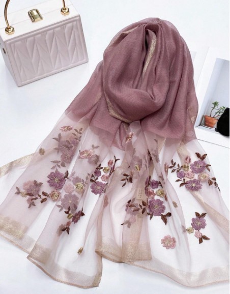 ခရမ်းရောင် ပန်းရင့်ရင့် ရွှေပန်းထိုး ပခုံးကို ရောစပ်ပြီး အမျိုးသမီးမျာအတွက်